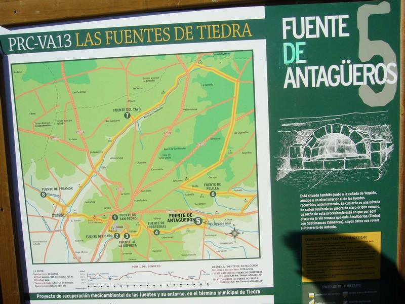 Tiedra – Fuente de San Pedro – Pobladura de Sotiedra – Arroyo de la Fuentecilla – Fuente del Tayo – Fuente de Pelilla – Fuente de Antagüeros – Fuente de Coberteras – Tiedra Castillo– Fuentes del Caño y de la Represa.
